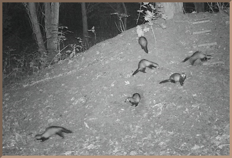 Over about an hour there are repeated visits by this Polecat to the Mound.