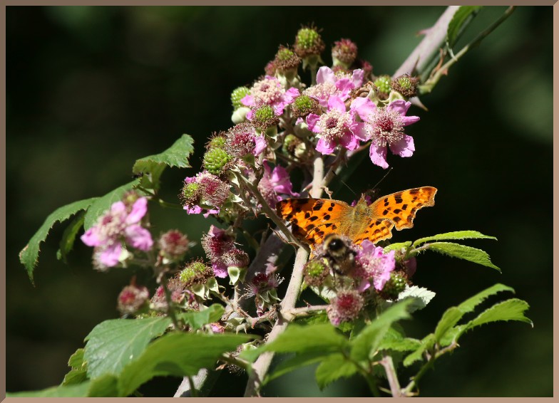 Is this a pic of the Blackberry flowers or of the Bee & Comma Butterfly feeding-on/fertilising them?