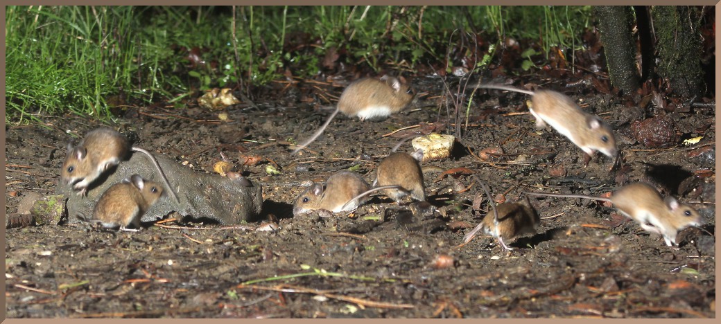 Ref: 20221225_e63_20221124_1822_125-20221125_0507_130_fb1 fieldmice (wood mice) visiting hedge bottom over one night (montage of 4 frames)(r+mb id@1024).jpg