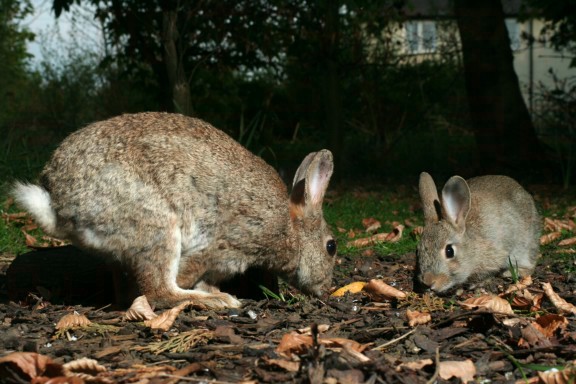 That's better - 2 young rabbits formation feeding.