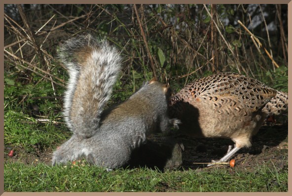 This female pheasant seems to come off best on encounters with Grey squirrels.