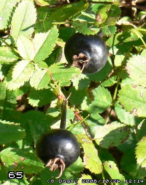 The fertilised flowers become Hips that some animals can eat, but are dangerous for humans without complicated processing to remove the fibrous content. Sometimes the hips burst or are broken open on the plant, though none were here. The blackening shiny finish that develops on the stem to the hip seems to be typical of this species - something we discovered from this sequence.